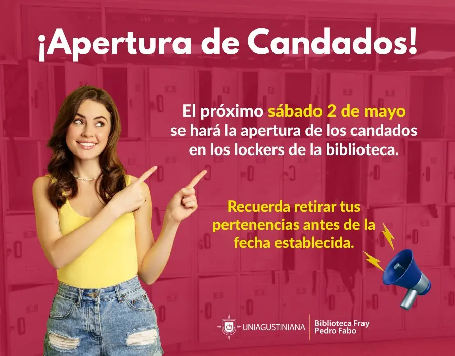 Se acerca una fecha importante que no puedes pasar por alto. La biblioteca anuncia la apertura de candados en los lockers, programada para el próximo sábado 2 de mayo 🗓️.