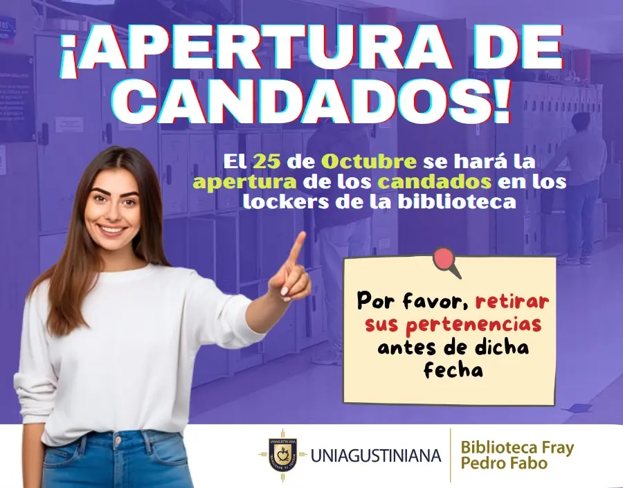 ⚠️ Atención, comunidad Uniagustiniana: el 25 de octubre la biblioteca abrirá los candados de los lockers.