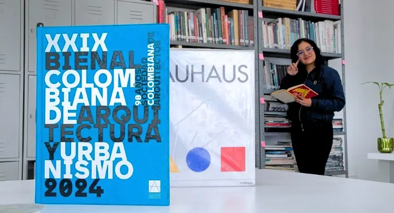 Este espacio reúne una destacada colección bibliográfica con obras de reconocidos arquitectos y teóricos como Rogelio Salmona, Alex Leandro Pérez, León Krier, Helmuth Ramos Calonge y Germán Téllez, referentes clave para comprender la arquitectura contemporánea.